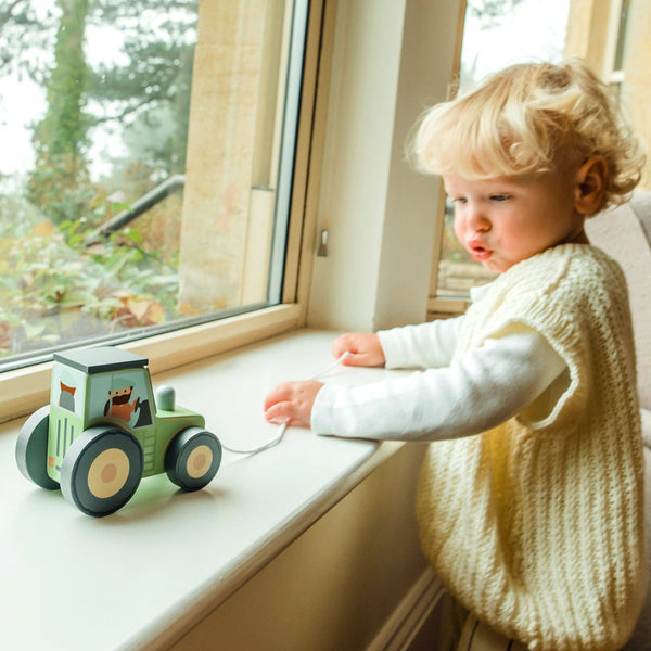 This lovely wooden Tractor pull along is the perfect traditional wooden toy.
